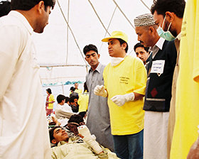 別の地域では、災害救援ボランティアがパキスタン軍の部隊と共同で活動しました。 彼らはへき地の避難所で暮らす何千もの人々に食料、水、医薬品を届け、リーダー格の人々にアシストの基本原則を教え、捨て鉢になった人々による暴動を回避するために避難所を組織化しました。 このチームは何千回ものアシストを提供し、同じことをやれるように1,800人以上にその方法をトレーニングしました。