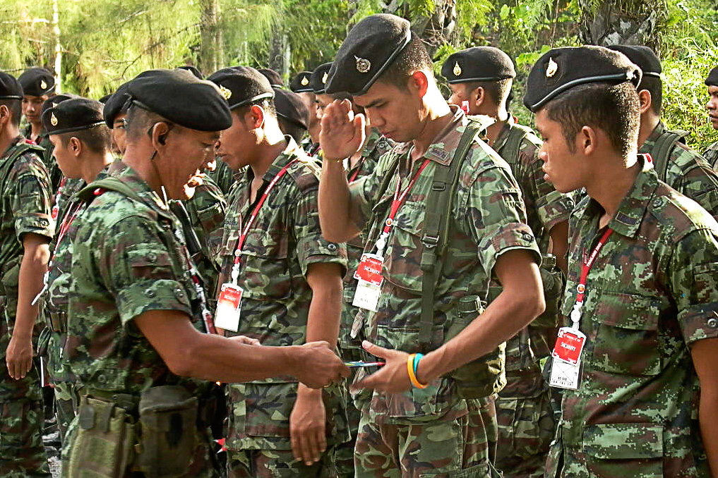 このチームはまた、600人の首都警察官や、タイ憲法を守る責任がある国王の王立軍の特別ユニットにもセミナーを提供しました。 「しあわせへの道」のトレーニングはすぐに軍のすべての部門に広がりました。軍の戦略指揮所にある情報センター、王国空軍のブラック・ホーク・ヘリ隊、タイ王国式典行進軍、王国通信部隊、そして近衛兵などにです。
